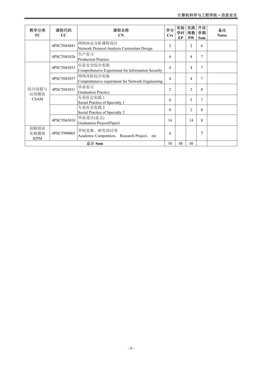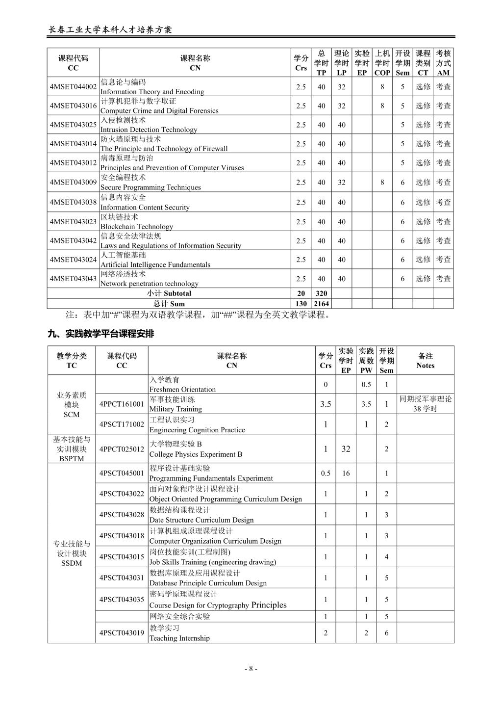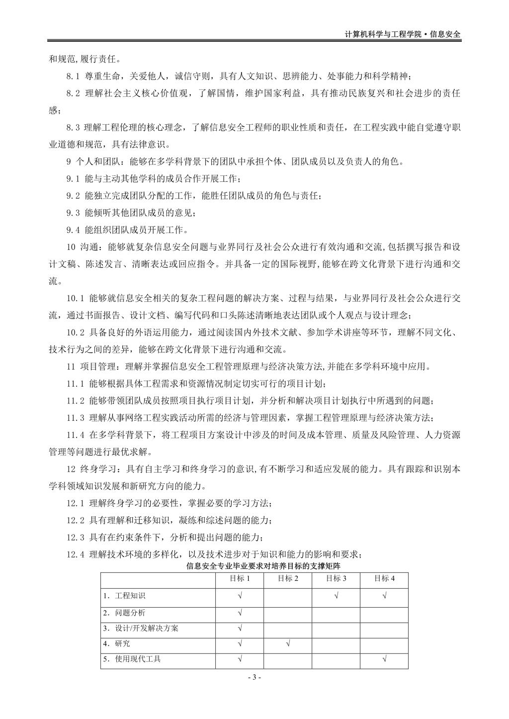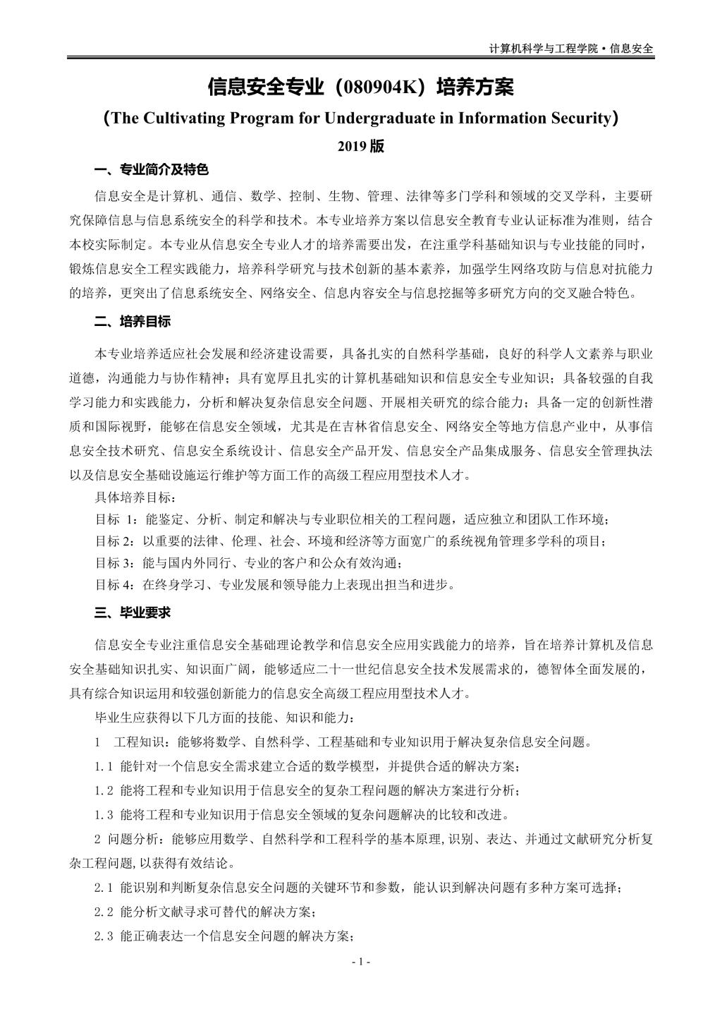信息安全专业(080904K)培养方案(2019版)