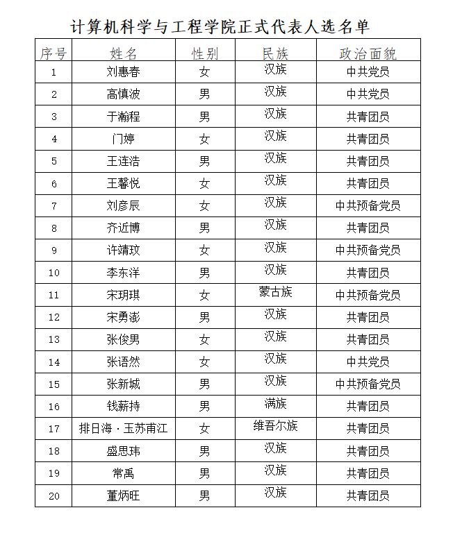 根据《共青团17吃瓜 第二次代表大会代表选举工作办法》,经17吃瓜 团员大会差额选举,现将17吃瓜 团委选举产生的共青团17吃瓜 第二次代表大会正式代表人选进行公示(按姓氏笔画排序):