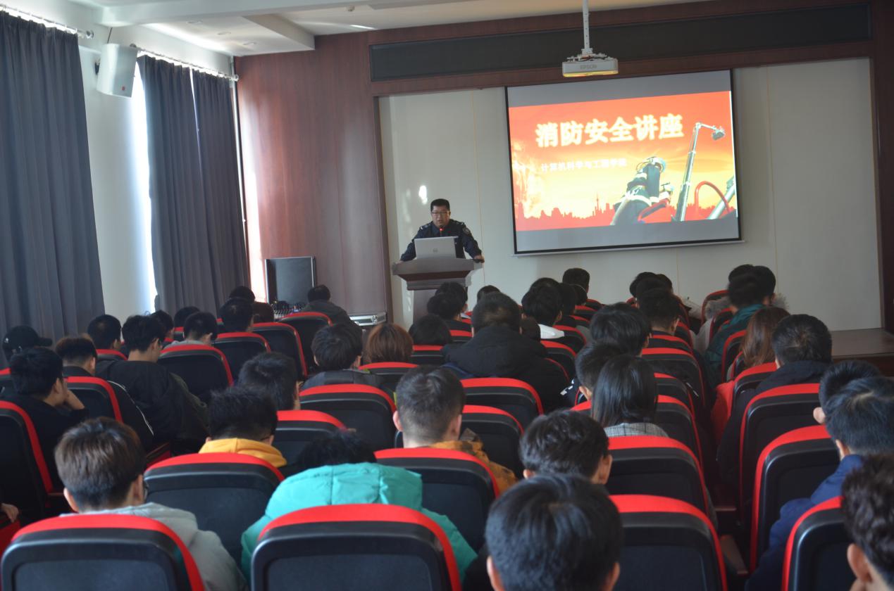 首先学校安全工作处副处长冯晓滨为师生代表做了消防安全知识讲座。他强调了校园消防安全的重要性,特别是广大师生应掌握消防安全四个能力:检查消除火患能力,组织补救初起火灾能力,组织人员疏散逃生能力,消防宣传教育培训能力。他结合具体案例说明了消防安全四个能力的重要性,并讲解了校园学习和生活中的消防安全知识。