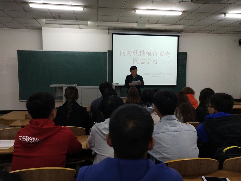 活动伊始,陈磊老师宣读《关于在全校开展向时代楷模黄文秀同学学习的通知》文件,并布置本次支部学习活动的学习任务。会议上,170407班团支部书记梁瑶作为学生代表表示作为当代青年要学习黄文秀艰苦朴素、自强不息,面对学习生活中的困难乐观开朗、积极向上、刻苦钻研的优良品行。陈磊老师强调我们党员学生干部和青年学生要以黄文秀同志为榜样,不忘初心、牢记使命,勇于担当、甘于奉献,要在新时代的长征路上作出新的贡献。