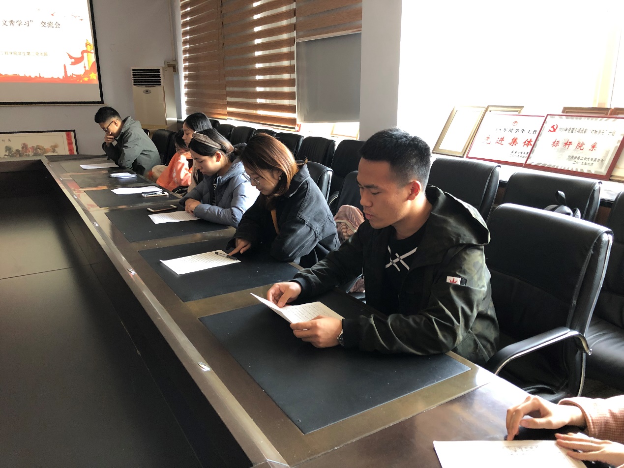 会上,全体党员共同观看了“黄文秀事迹”视频资料,使人感到一种青春的昂扬,一种使命在肩的执着信念,一种矢志不渝的力量,那就是共产党员的本色:不忘初心、牢记使命。黄文秀作为习近平新时代的共产党员,用生命诠释了共产党员的初心与使命,她把生命献给了百坭村,用生命守护了共产党员的初心。随后,学生党员们分享了各自的心得体会,进行了深层次地交流,预备党员刘世昌表示:弘扬奉献精神是新时代奋斗者应执守的人生追求,也是新时代奋斗者的价值追求,作为当代大学生,要以黄文秀同志为榜样。