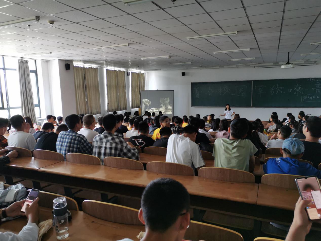 2019级全体新生在北湖校区西阶301教室组织观看了爱国影片《战狼》及《厉害了,我的国》。