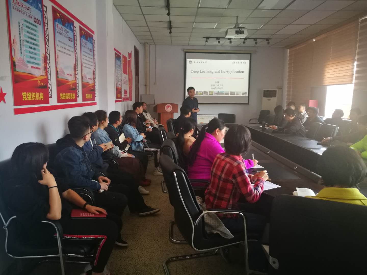 刘铭老师主讲《深度学习及相关应用》报告。人工智能研究院成员及数十位师生参加了本次学术交流活动。