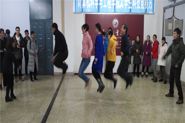 接下来的游戏环节共有五个代表队参加,即计算机科学与技术系、电子信息工程系、网络工程系、软件工程系、实验中心及办公室联合代表队。设置了3个项目,分别为“你做我猜”、“快乐颠球”、“趣味跳绳”,项目内容新颖、妙趣横生,使参加活动的教工们体会到了活动的乐趣,更感受到了团结协作的重要。比赛中,老师们纷纷为自己的代表队出谋划策,助威呐喊,到处都洋溢着轻松愉快的气氛。