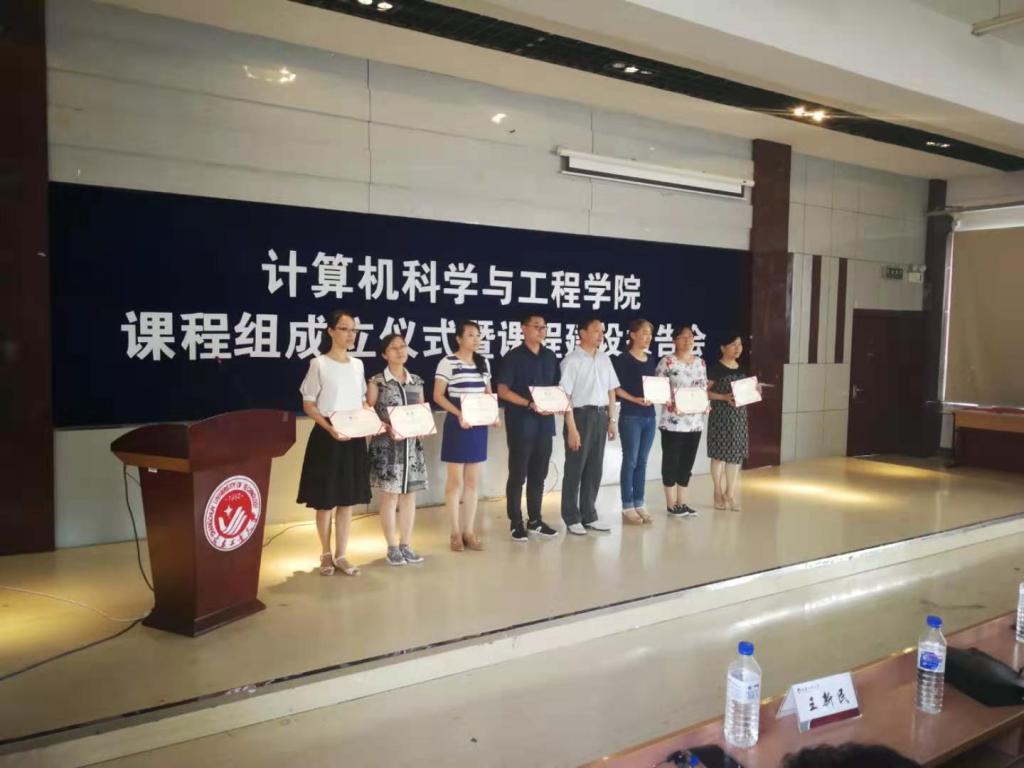 课程组成立仪式暨课程建设报告会在综合三举行。副校长王二辰、校督导组组长王新民、教学质量监控与评价中心主任张宝昌、校教学指导委员会秘书长张恩忠、教务处副处长杨国程出席成立仪式,全院教职工参加了成立仪式及报告会。