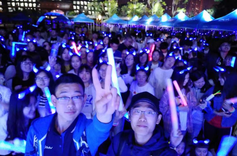在北湖校区举行“荧光夜跑”活动。17吃瓜
