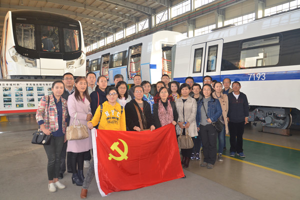 随后,长客领导带领教师党员们参观地铁车间的生产线,为我们讲解地铁生产的流程及工艺。告诉大家:“长客公司不仅生产高铁,同时也在生产普通火车车厢和城际轨道客车如地铁、轻轨等。长客城轨车不仅在国内销量斐然,也受到了国际市场的瞩目。产品已出口到伊朗、沙特阿拉伯、香港、巴基斯坦、孟加拉、巴西等多个国家和地区。孜孜不倦的长客人,正在为了将火车销售到火车的‘故乡’——欧洲,而不懈努力。”