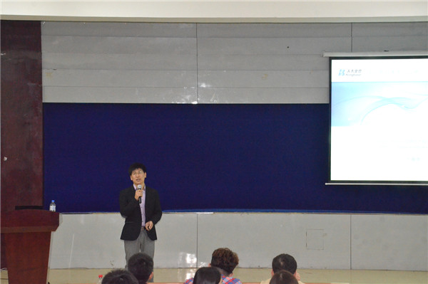 2013级学生,本次招聘会由人大金仓公司人事部招聘主管张喜儒主讲,校企合作部主任汤淼老师主持。