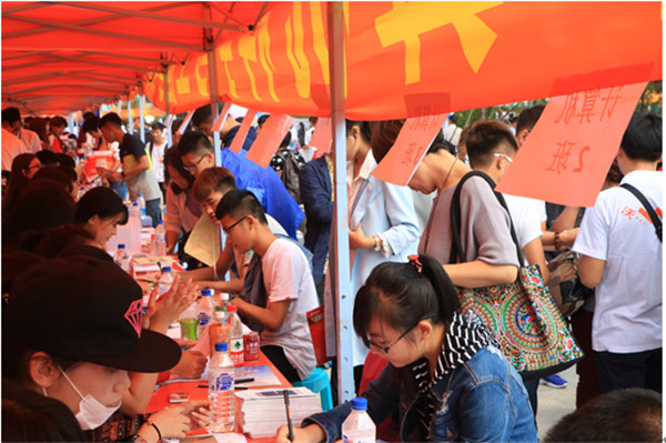 领导也与志愿者一同为新生家长答疑解惑,亲切交谈。各个部门在此次迎新工作中分工明确,组织有序,密切配合,报到过程高效快捷,井然有序,受到了新生及家长的一致好评。