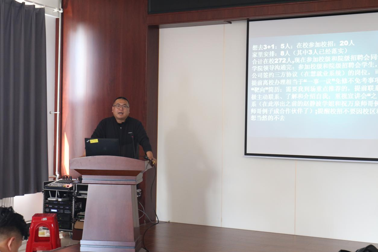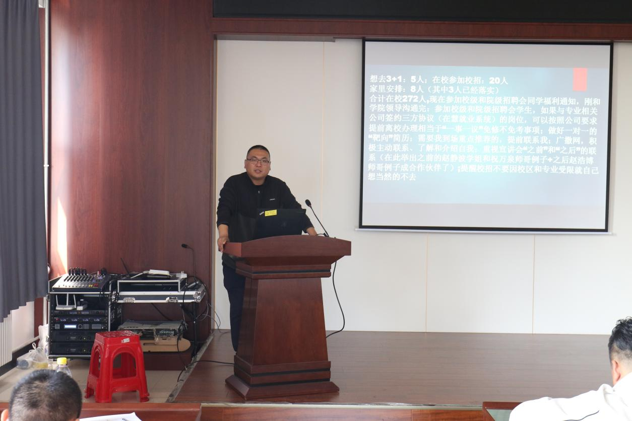 就业信息网,提醒同学提前做好“靶向”简历。在为同学们介绍就业工作准备时,他特别强调了签约流程,并且提醒同学们除了应当具备专业知识何能力以外,还应当具有良好的心理素质和一定的求职技巧。最后他对学业预警的相关文件进行了说明。