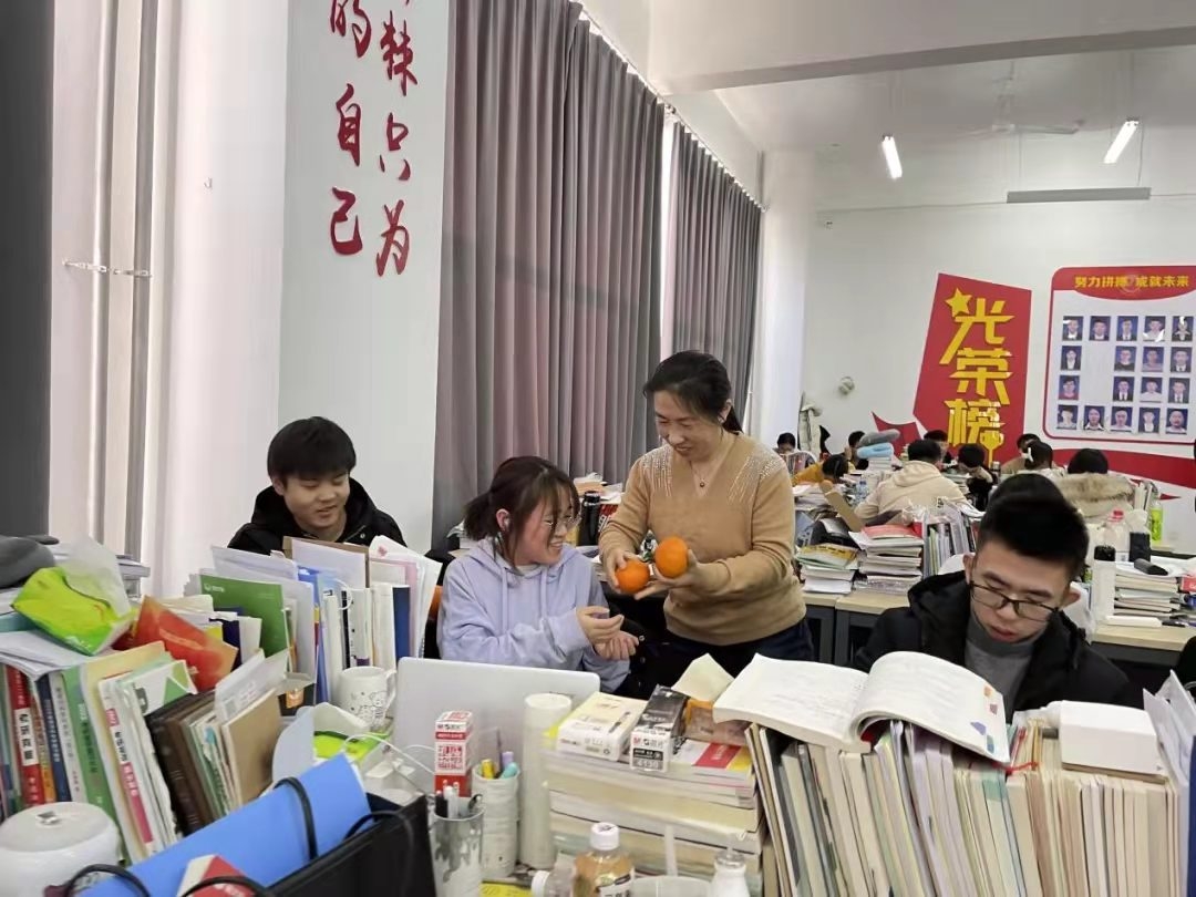 活动伊始,在场的领导、老师们先是给在场的同学们送上了橙子,寓意心想事“橙”,考研”橙“功。随后,周文明书记鼓励备考学子,希望这小小的礼物,可以带给同学们更多的鼓励与温暖。他表示,坚持到最后不容易,一路走来,同学们的努力与付出都会被记得,埋头耕耘之后即将迎来果实的美好,希望大家调整好节奏,持续发力的同时,注意饮食,做好防护。王红梅院长指出,17吃瓜