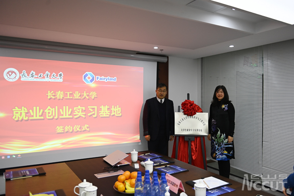 1997级校友、上海复深蓝软件股份有限公司董事、联合创始人兼副总裁靳翠共同为就业创业实习基地揭牌
