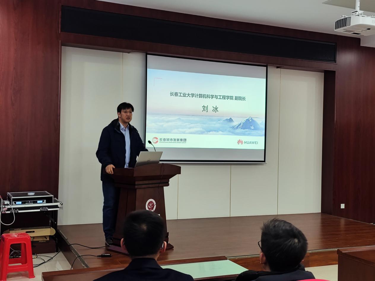 副院长刘冰致词,他表示:构建高质量的人才培养体系,需要产教融合。本次举办华为昇腾AI精英特训营,有利于双方校企合作,以产业和技术发展的最新需求推动学校人才培养体系变革,促进专业建设质量的持续提升,培养行业急需的人才。