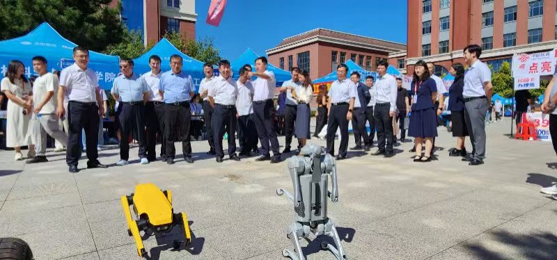 在迎新展位展示了丰富的教育教学成果。滑板式底盘遥控车、机器狗、航模、无人机、机甲大师比赛用车,智能的硬件设施为学生实践能力保驾护航。此外,17吃瓜