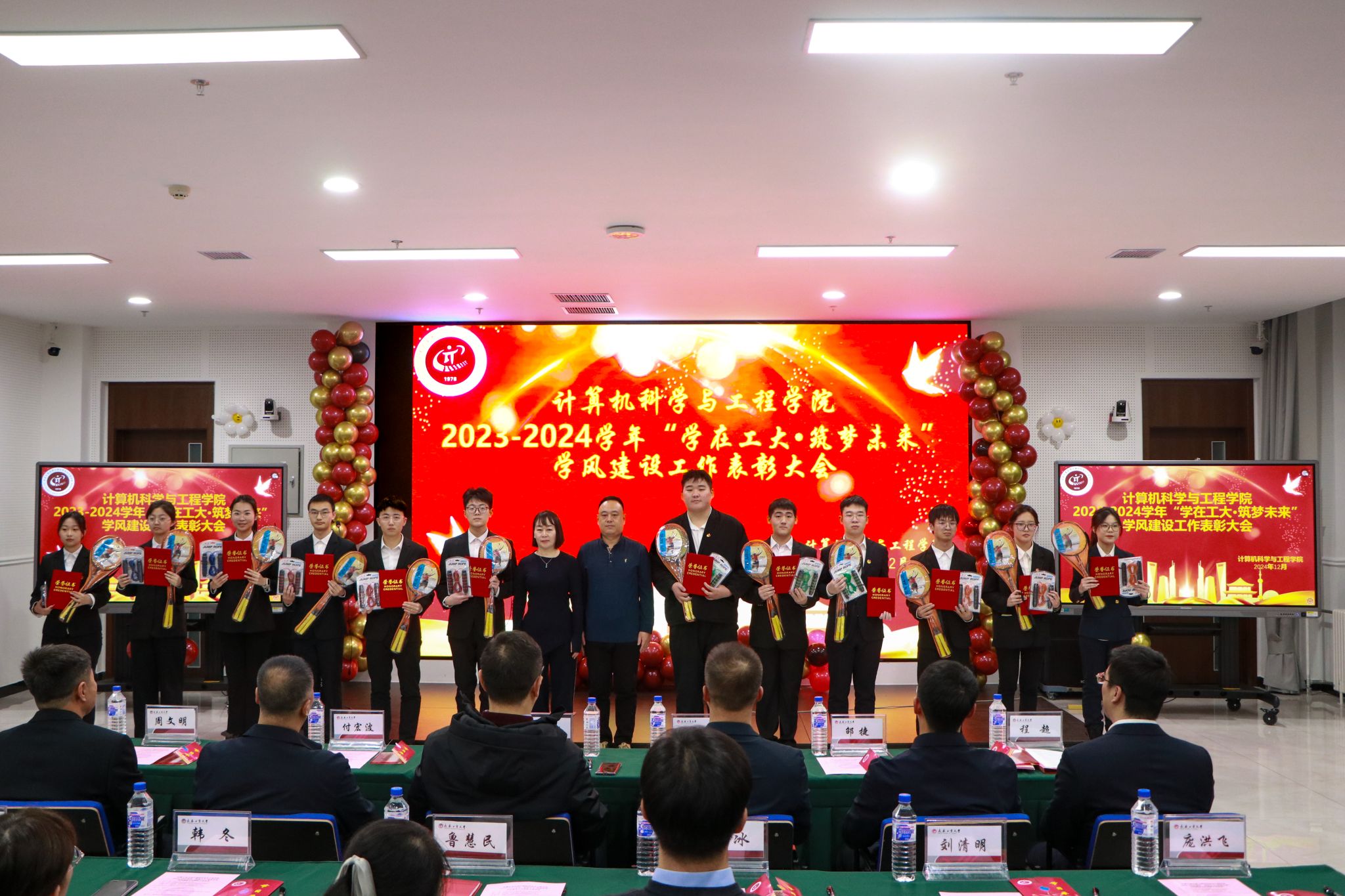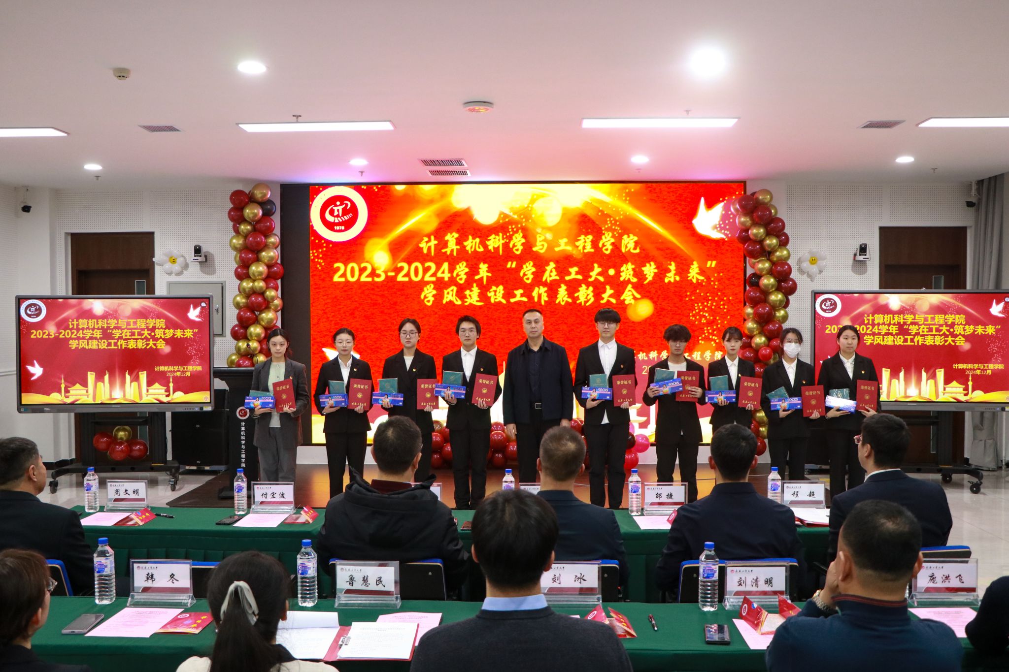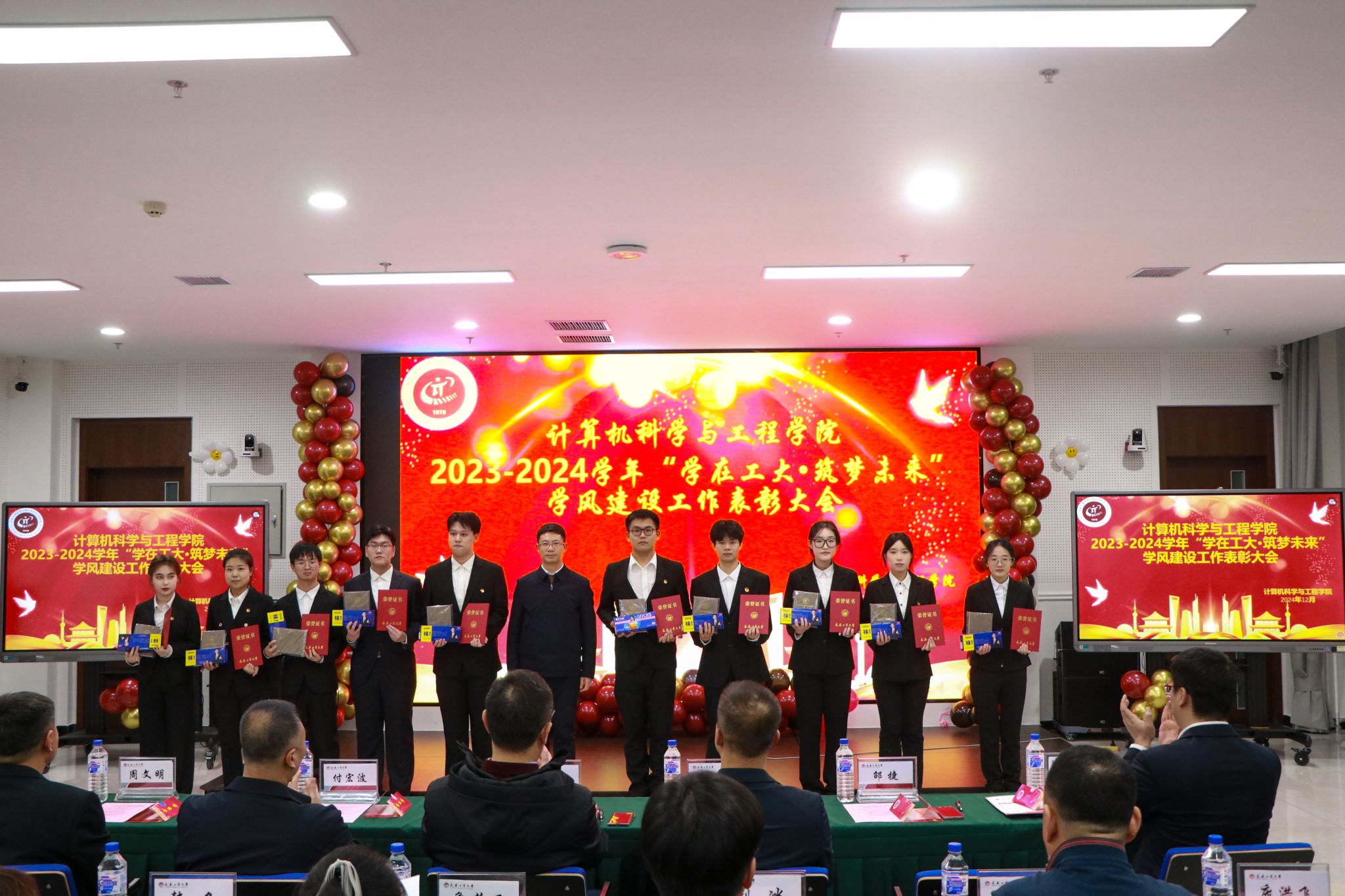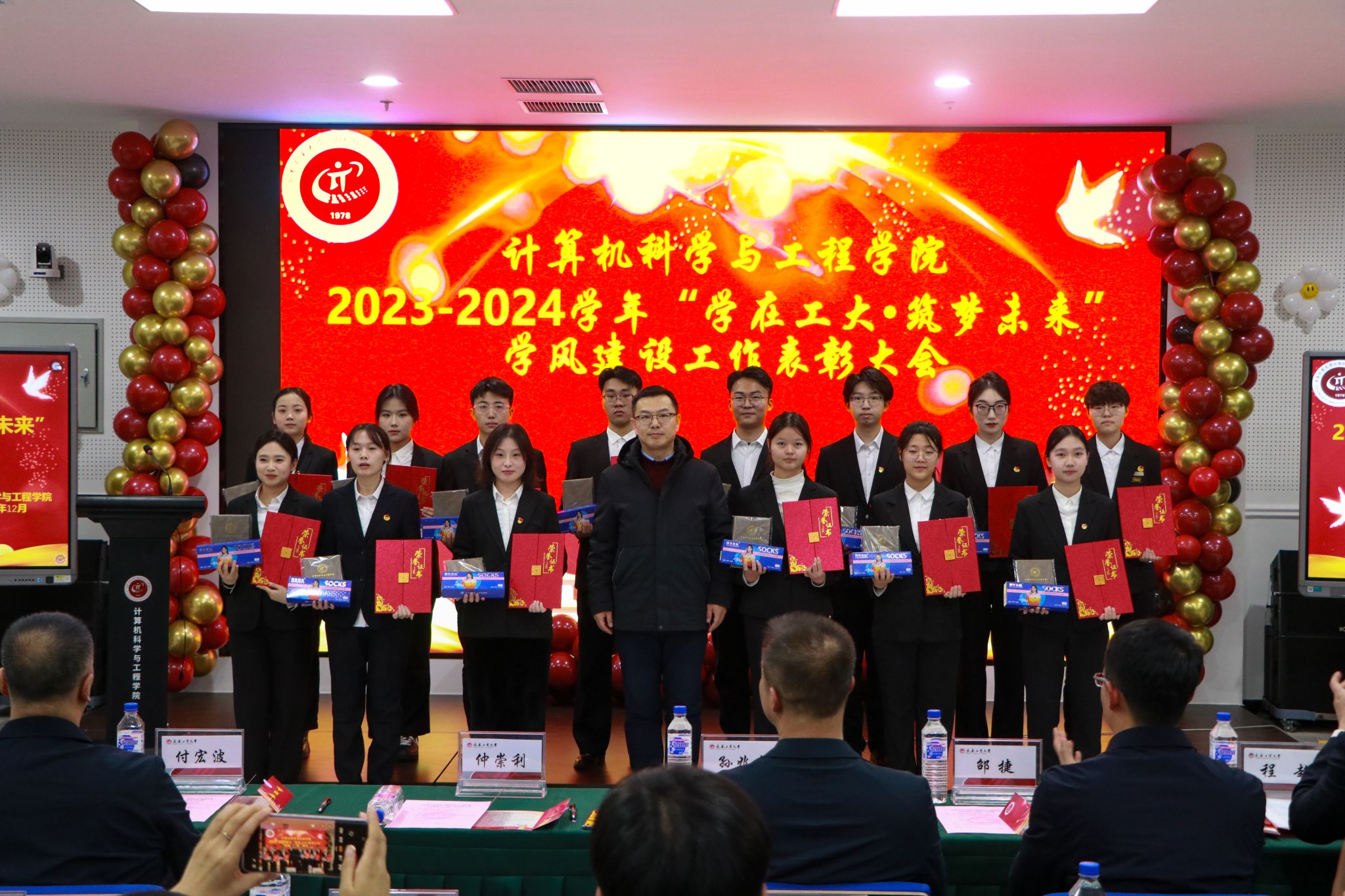 于12月20日在北湖西区图书馆多功能厅隆重举行2023-2024学年“学在工大·筑梦未来”学风建设工作表彰大会。党委学生工作部、武装部部长仲崇利,党委研究生工作部部长孙兆龙,招生就业处处长付宏波,校团委书记邵捷,17吃瓜