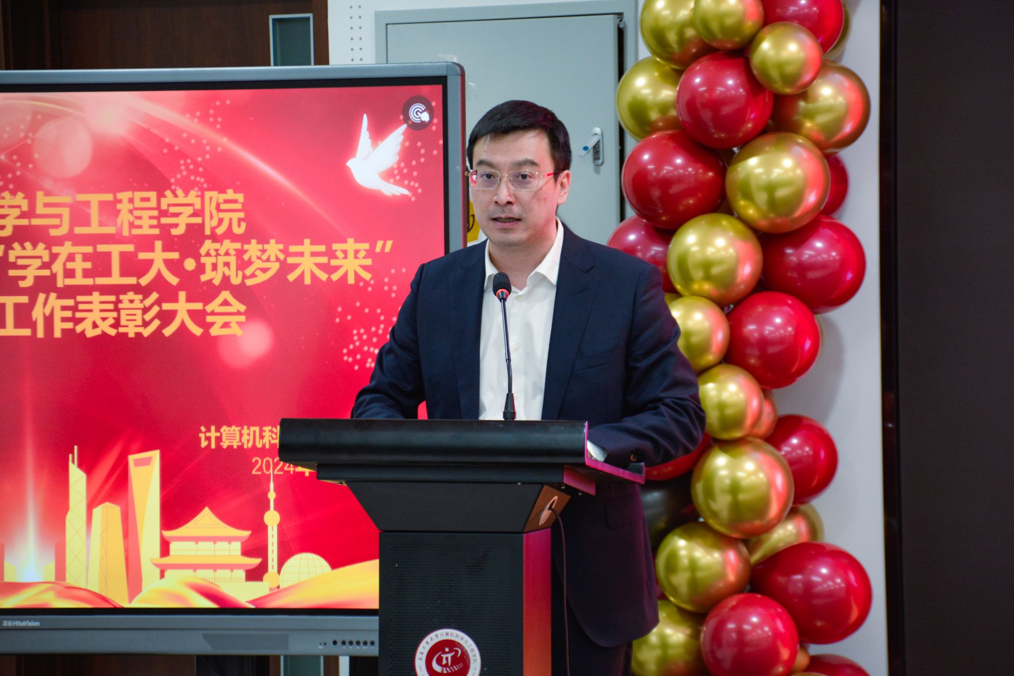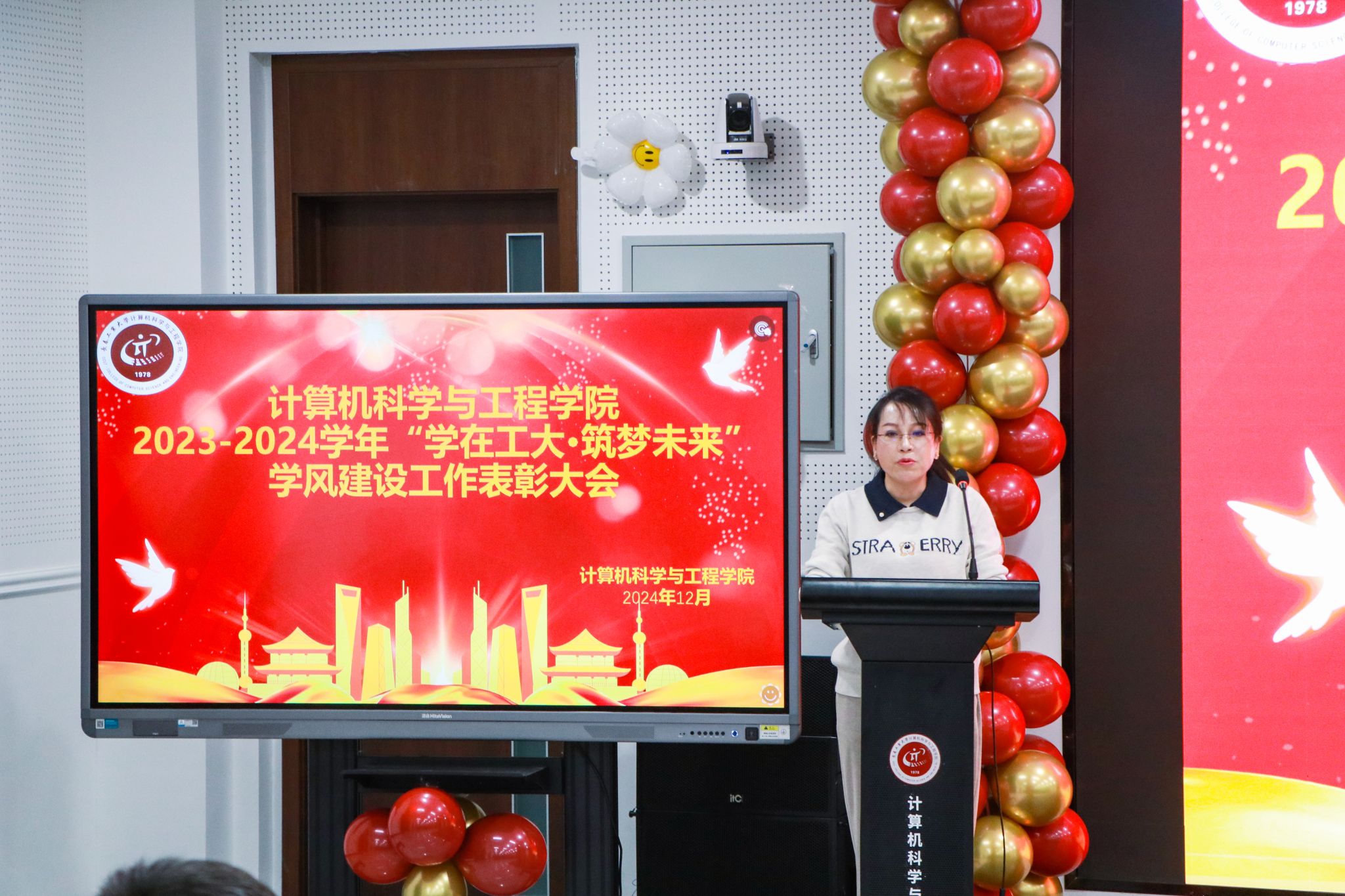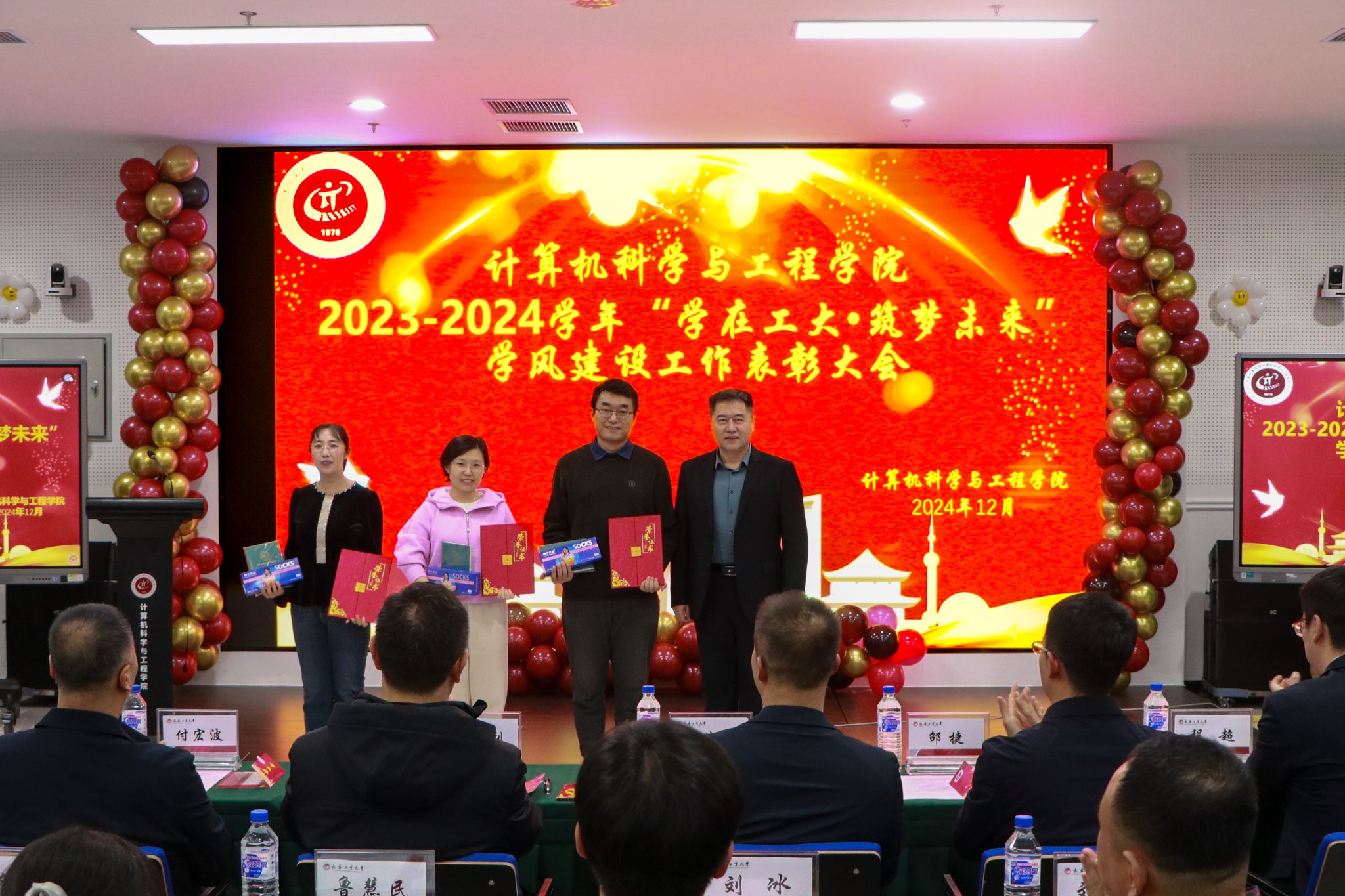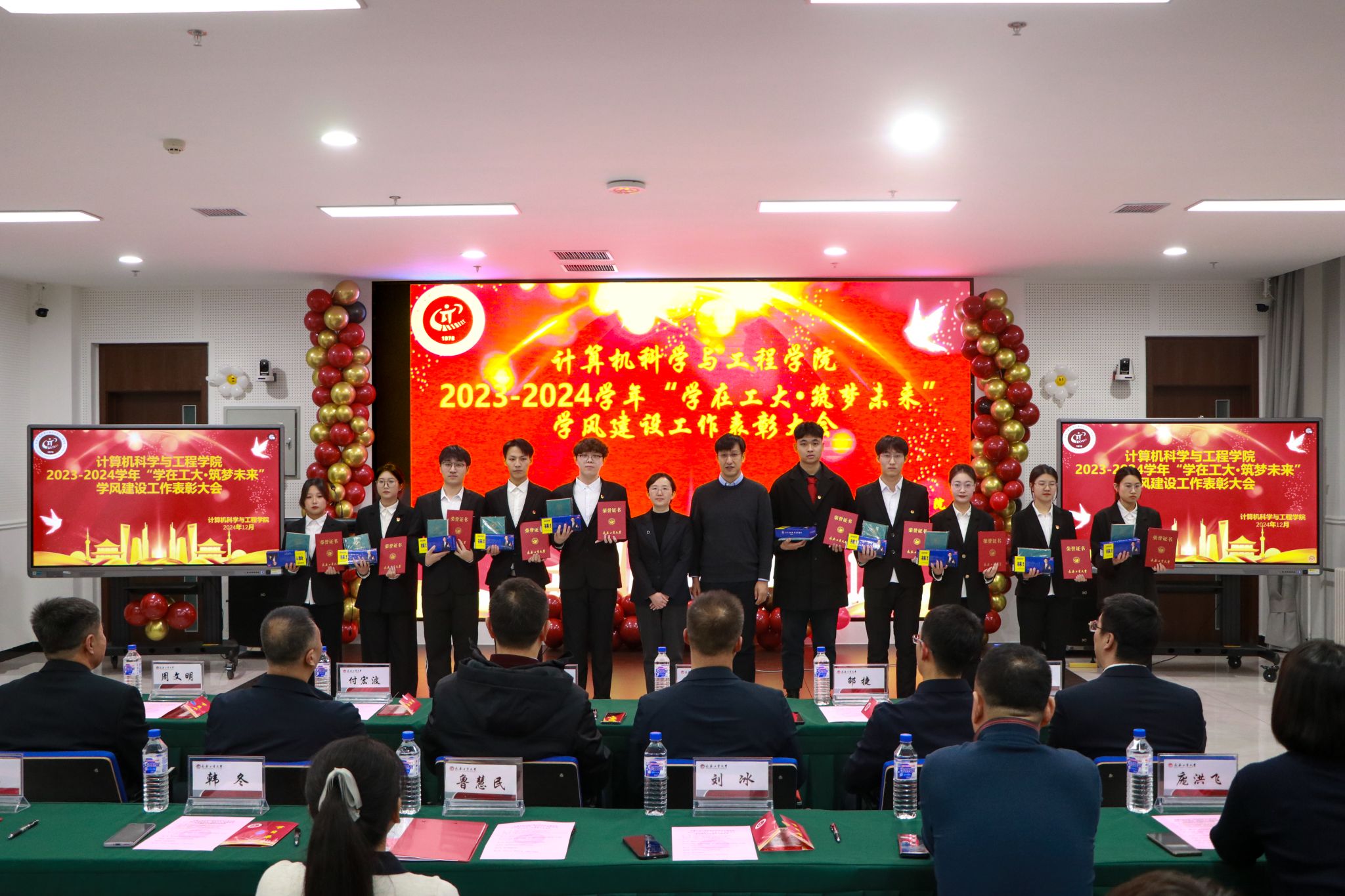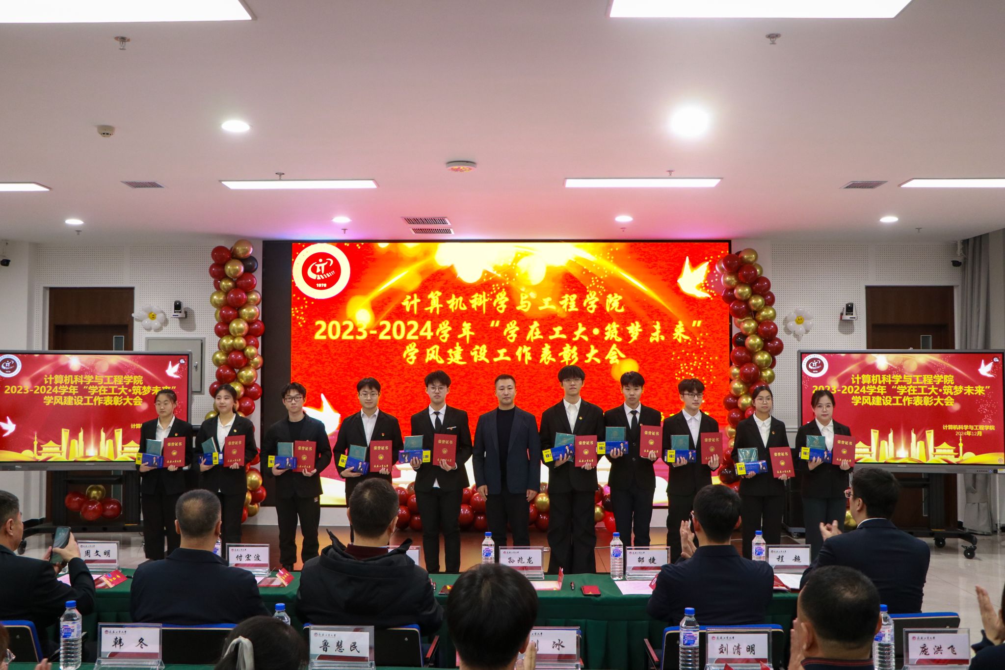 于12月20日在北湖西区图书馆多功能厅隆重举行2023-2024学年“学在工大·筑梦未来”学风建设工作表彰大会。党委学生工作部、武装部部长仲崇利,党委研究生工作部部长孙兆龙,招生就业处处长付宏波,校团委书记邵捷,17吃瓜