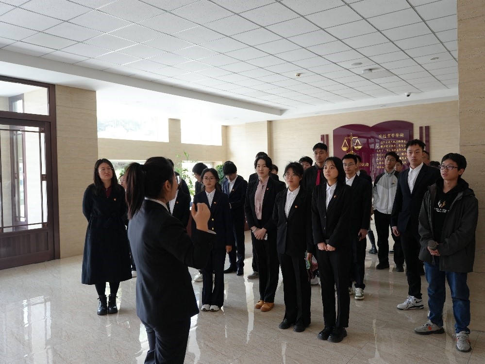 上午9时,师生抵达宽城区人民法院立案大厅。刑事审判庭张同秀法官讲解了解了“一站式”立案流程、智能化诉讼服务终端的功能及法院各职能部门的协同工作机制。学生们在实地探访中亲历区块链存证系统全流程回溯、AI量刑辅助模型精准推演,深刻感悟智慧法务的数字化、规范化理念,实现从“司法为民”理念感知到“科技向善”职业责任意识的双重升华。随后,师生前往二楼刑事审判区,实地参观被告人羁押室及刑事审判庭。