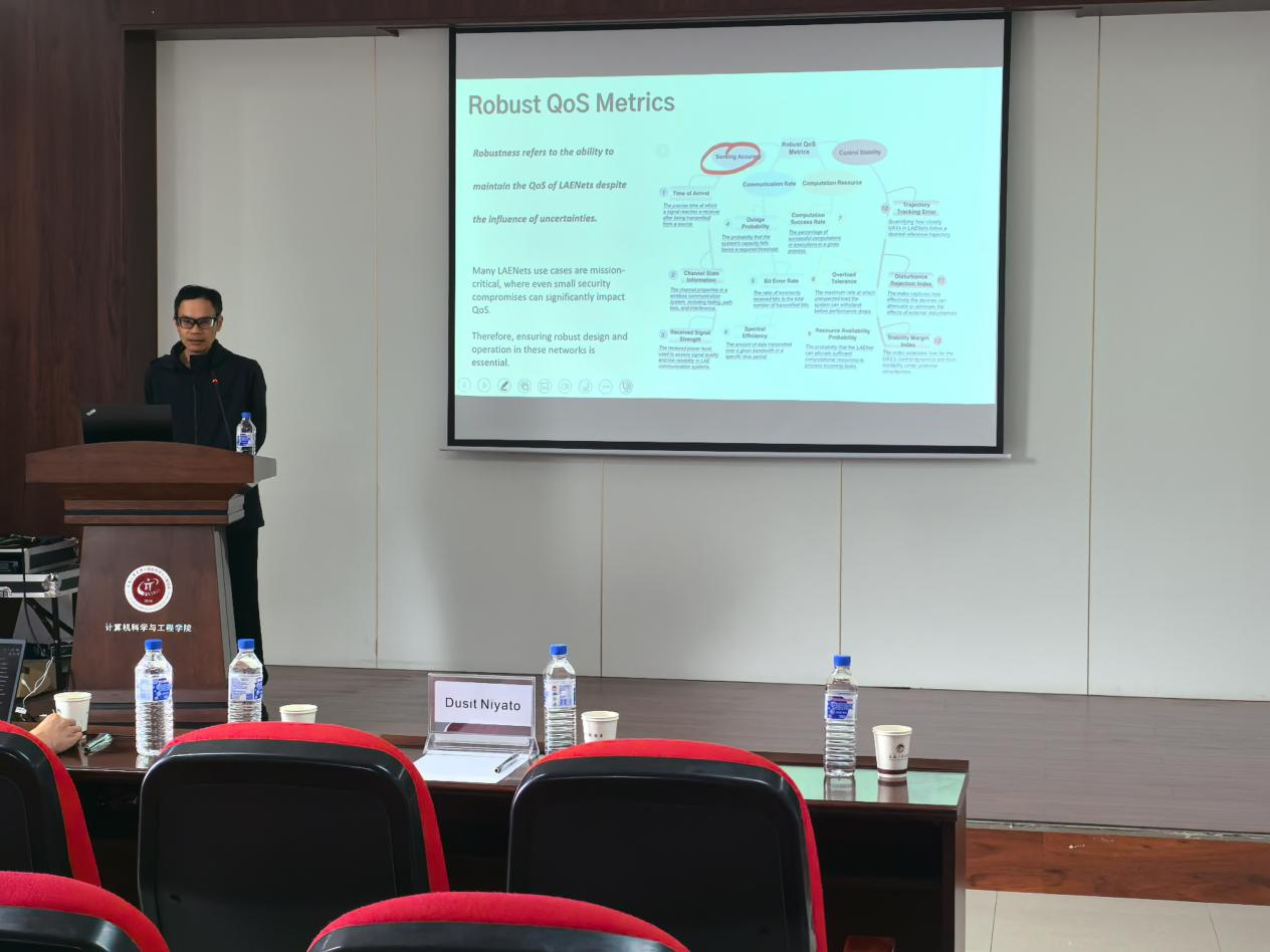 校长讲席教授、IEEE Fellow Dusit Niyato作专题演讲。Dusit教授分享了生成式AI在低空通信网络中的前沿应用,并与现场师生就分布式机器学习、边缘智能等技术挑战进行了交流。本次活动为17吃瓜