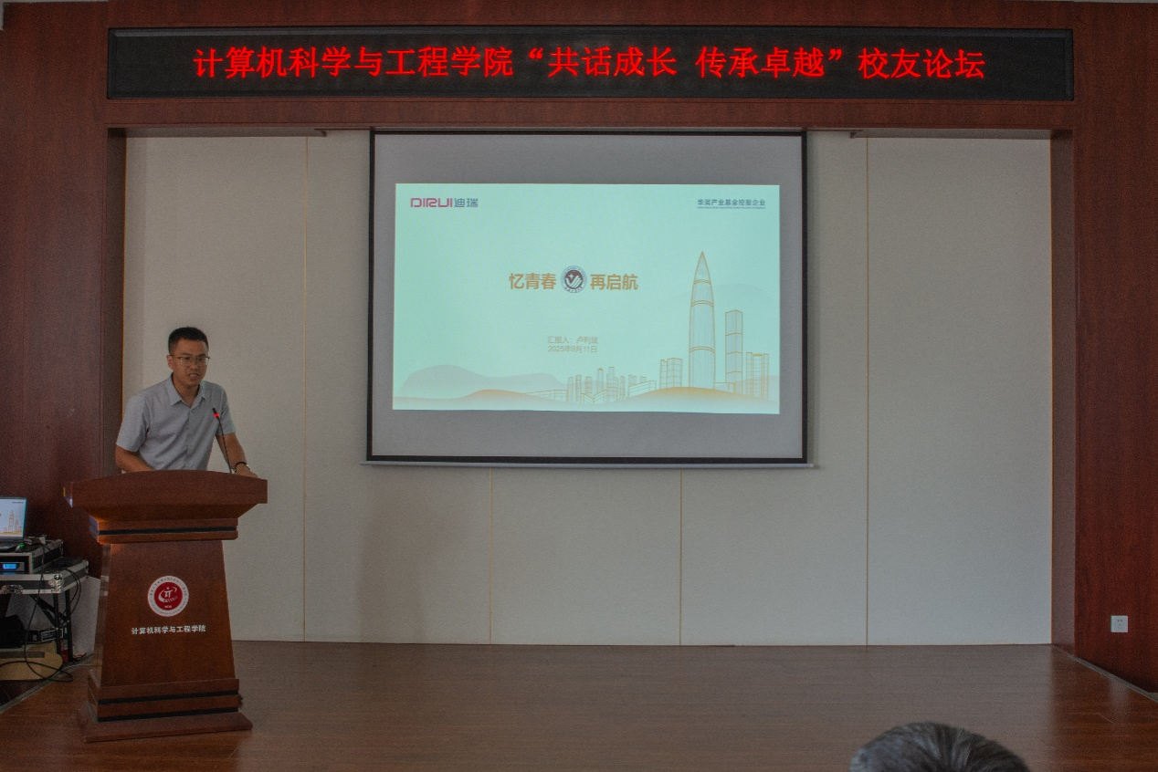 2010级电子信息工程专业校友卢利斌,现任迪瑞医疗电气技术部总经理,曾带领团队打造公司首条全自主知识产权实验室流水线,突破国外技术垄断。他以“忆青春,再启航”为题,生动回顾从实验室萌新到技术管理者的成长历程,强调跨学科知识融合与工程实践能力,并寄语学弟学妹“保持乐观,凡所经历皆有利于我”。