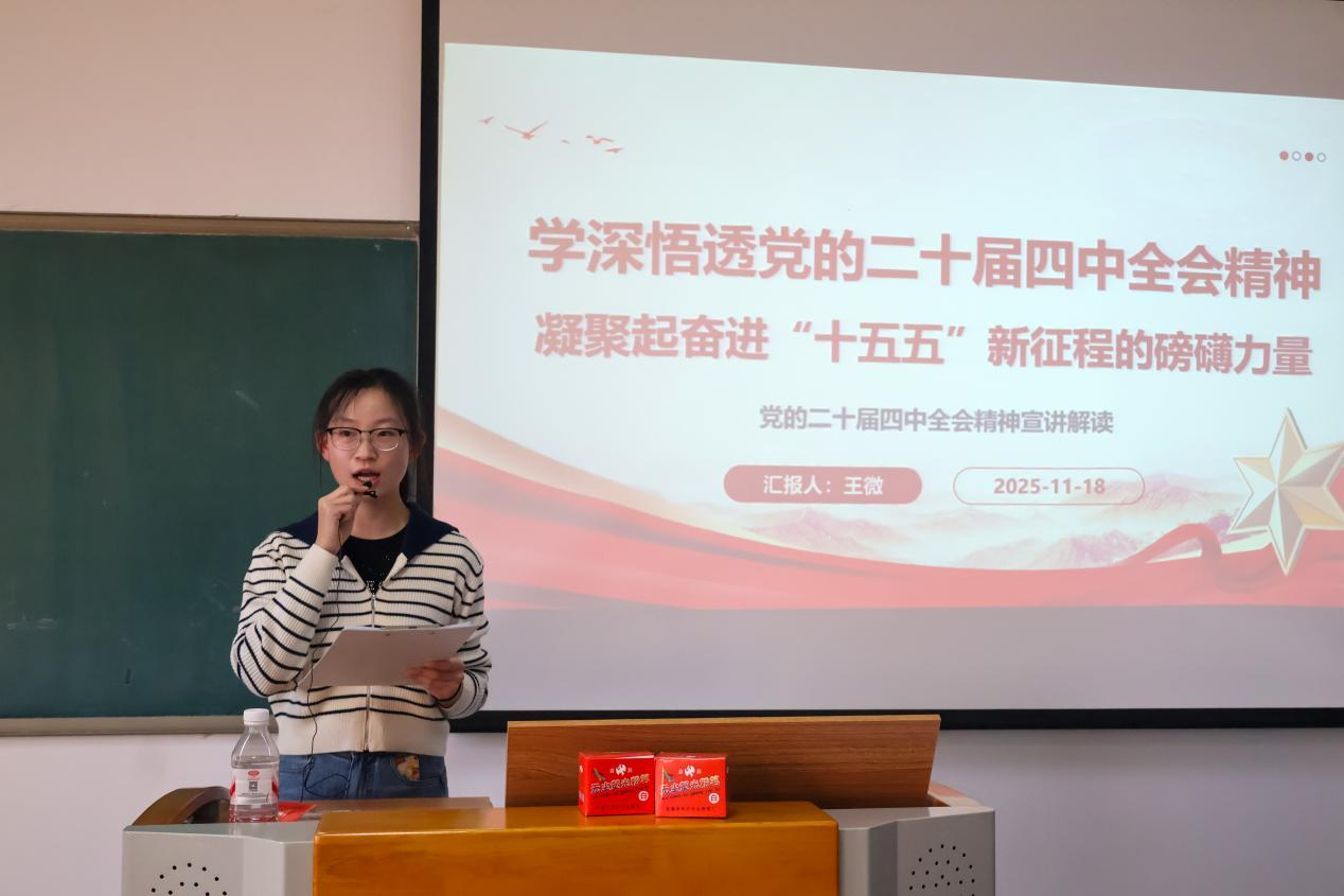 王微老师的报告立意高远、逻辑严谨、内容丰富,既有深厚的理论功底支撑,又紧密联系国情省情与实际工作,极具思想性、指导性和启发性。她的精彩讲解,使在场师生对党的二十届四中全会精神有了更系统、更深刻的理解,对“十五五”时期的宏伟蓝图与实践路径有了更清晰、更全面的把握。