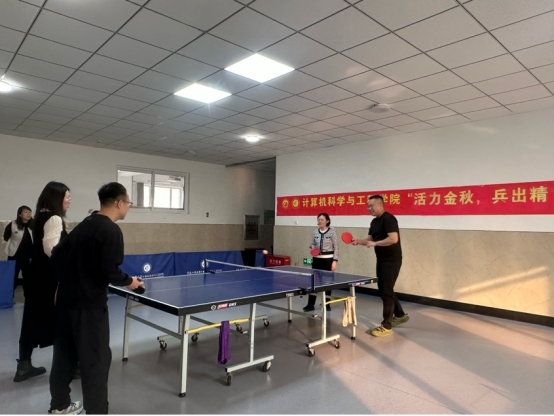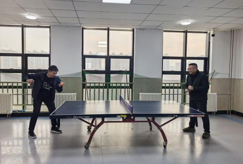 四楼活力开赛。教职工们化身“运动健将”,在一推一挡、一攻一守中,彰显拼搏向上的体育精神。