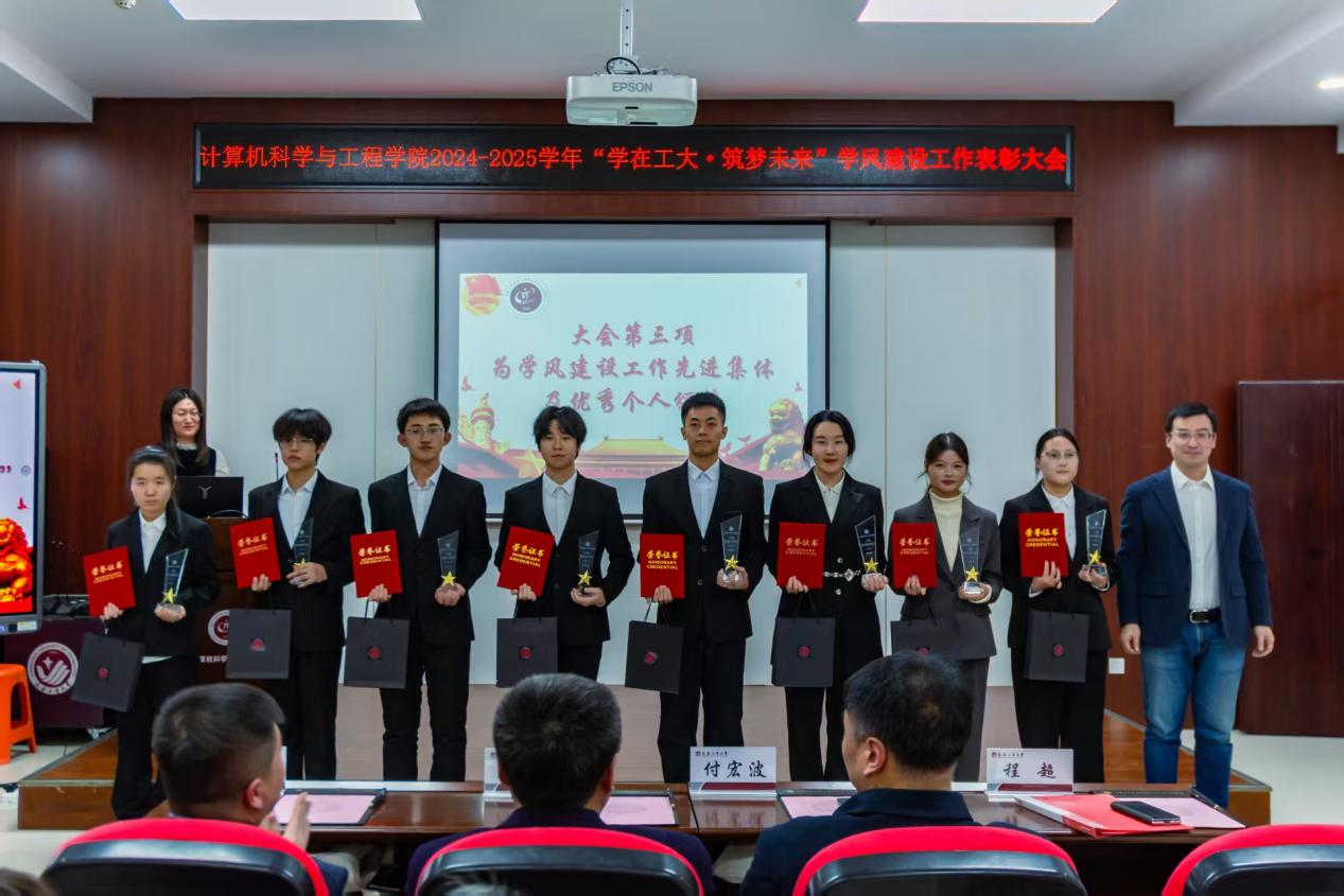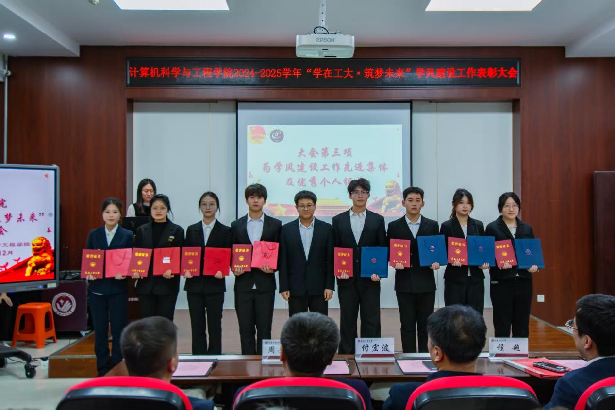 在323会议室举行2024-2025学年“学在工大·筑梦未来”学风建设表彰大会。招生就业处处长付宏波、党委学生工作部副处长赵海涛、校团委副书记万杨、17吃瓜
